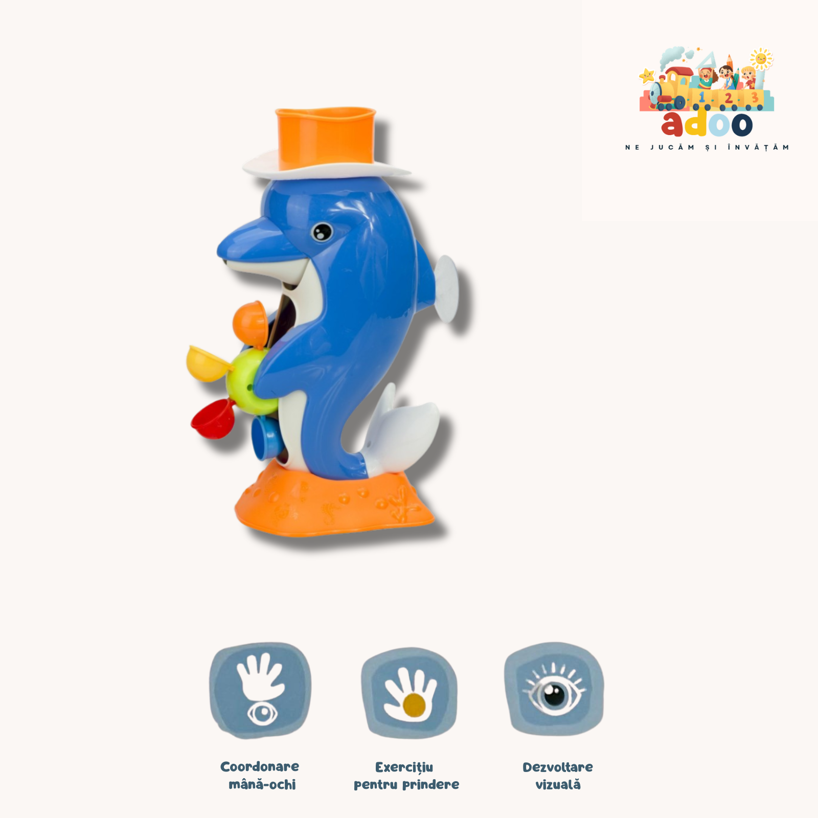 Aceste jucarii sunt perfecte pentru a transforma baia copilului într-o experienta plina de distractie si învatare, contribuind la dezvoltarea sa armonioasa si la crearea unor amintiri placute. Caracteristici: Non-toxic: Materialul din care este fabricata jucaria este non-toxic si prietenos cu mediul, asigurând astfel siguranta copilului. Design Atragator: Designul adorabil al robinetului de dus în forma de ratusca face timpul de baie al bebelusului mai interesant si îmbunatateste capacitatea acestuia de a recunoaste formele obiectelor. Stimulare Activa: Aceasta jucarie de dus încurajeaza bebelusul sa fie mai activ în viata de zi cu zi si îl face fericit sa faca baie. Dezvoltare Inteligenta: Jucaria contribuie la dezvoltarea inteligentei bebelusului, exerseaza abilitatea vizuala si atrage atentia copilului. Versatilitate: Aceasta jucarie de baie este potrivita si pentru a fi utilizata în piscina, oferind ore de distractie interactiva.