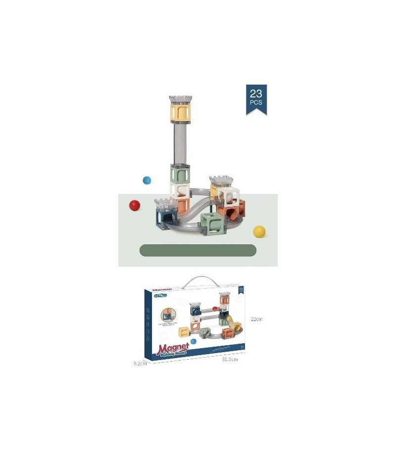 Cuburi magnetice pentru constuctii sunt disponibile in diferite culori care se conecteaza intuitiv pentru a ajuta la coordonarea mana-ochi, antrenamentul abilitatilor motorii si dezvoltarea creierului. Setul contine pante, tobogane, bile, cuburi, tuburi, pentru realizarea unei piste 3D care permit copiilor sa isi stimuleze imaginatia. Prin interconectarea formelor 3D, copiii invata despre forme geometrice, principii si polaritati ale magnetilor, modele arhitecturale si structurale. Cuburile permit celor mici sa construiasca priopriile modele in timp ce isi dezvolta abilitatile motorii fine in timp ce se joaca. Copiii isi pot reproduce propriile constructii intr-o varietate de culori stralucitoare si forme distractive, iar piesele captivante ii ajuta sa ramana concentrati, incurajand in acelasi timp lucrul in echipa pentru si mai multa distractie.