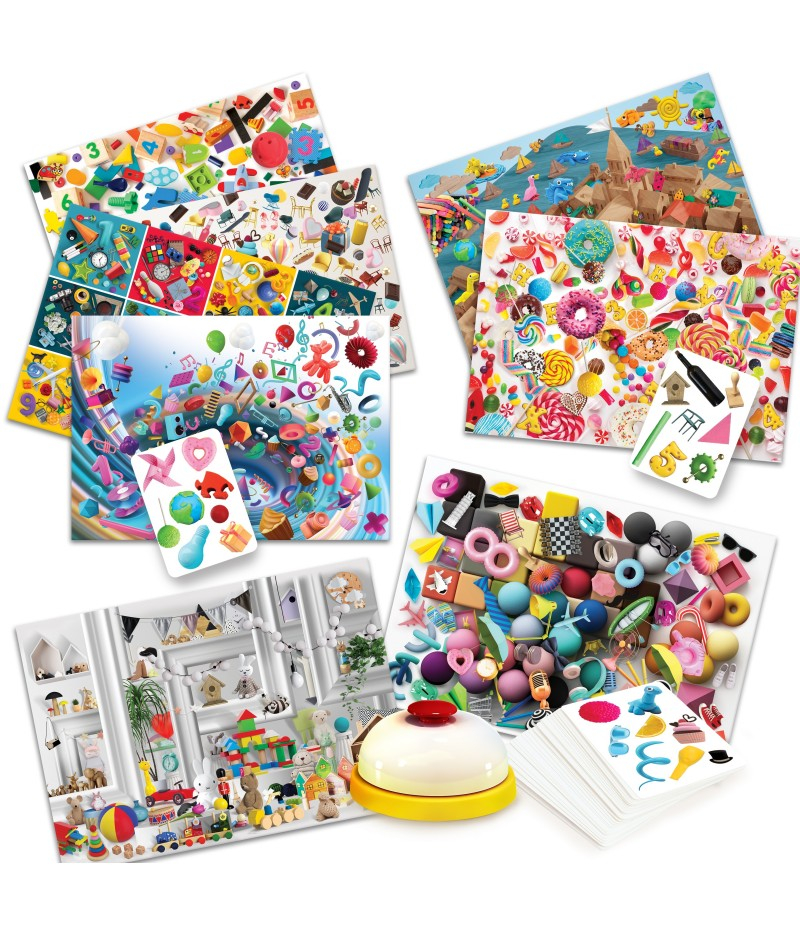Cel mai distractiv si antrenant joc de obseratie! Alege o plansa de joc, trage o carte si gaseste rapid obiectul ascuns. Fii primul care suna din clopotel si castiga! Jocul contine 4 planse de joc, 30 de cartonase cu obiecte, 1 clopotel si 1 manual de instructiuni. Valori dezvoltate perceptia vizuala, coordonarea mana-ochi, abilitati sociale. Jucatori 2-4. Varsta 6+. Nu necesita baterii.