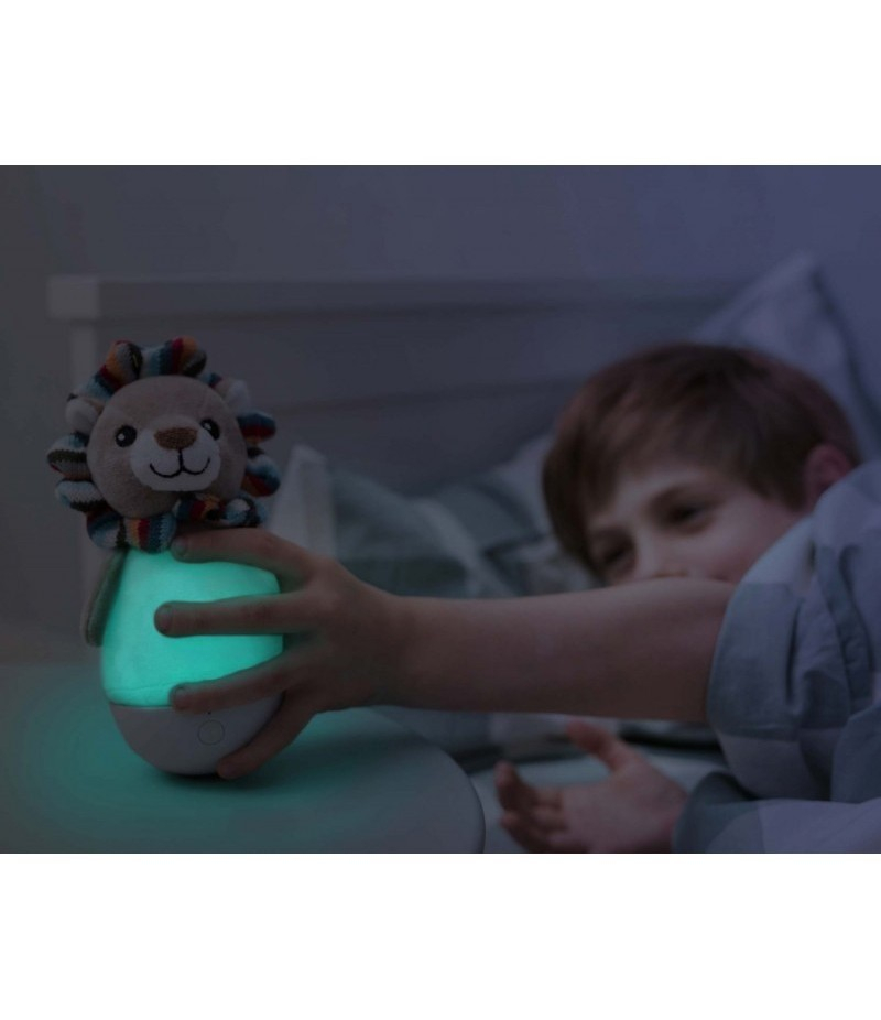 Detalii tehnice Lampa de veghe multicolora Hopa Mitica Leul: Dimensiuni 8 x 18 cm. Lumina: LED. Baterie reincarcabila incorporata. Cablu USB inclus. Child-safe ABS; LED. Produsele au fost testate conform reglementarilor internationale de siguranta. Greutate: 0.2 kg. Timer: Lumina se va opri automat dupa 30 de minute. Husa de plus a lampii de veghe este detasabila si lavabila.