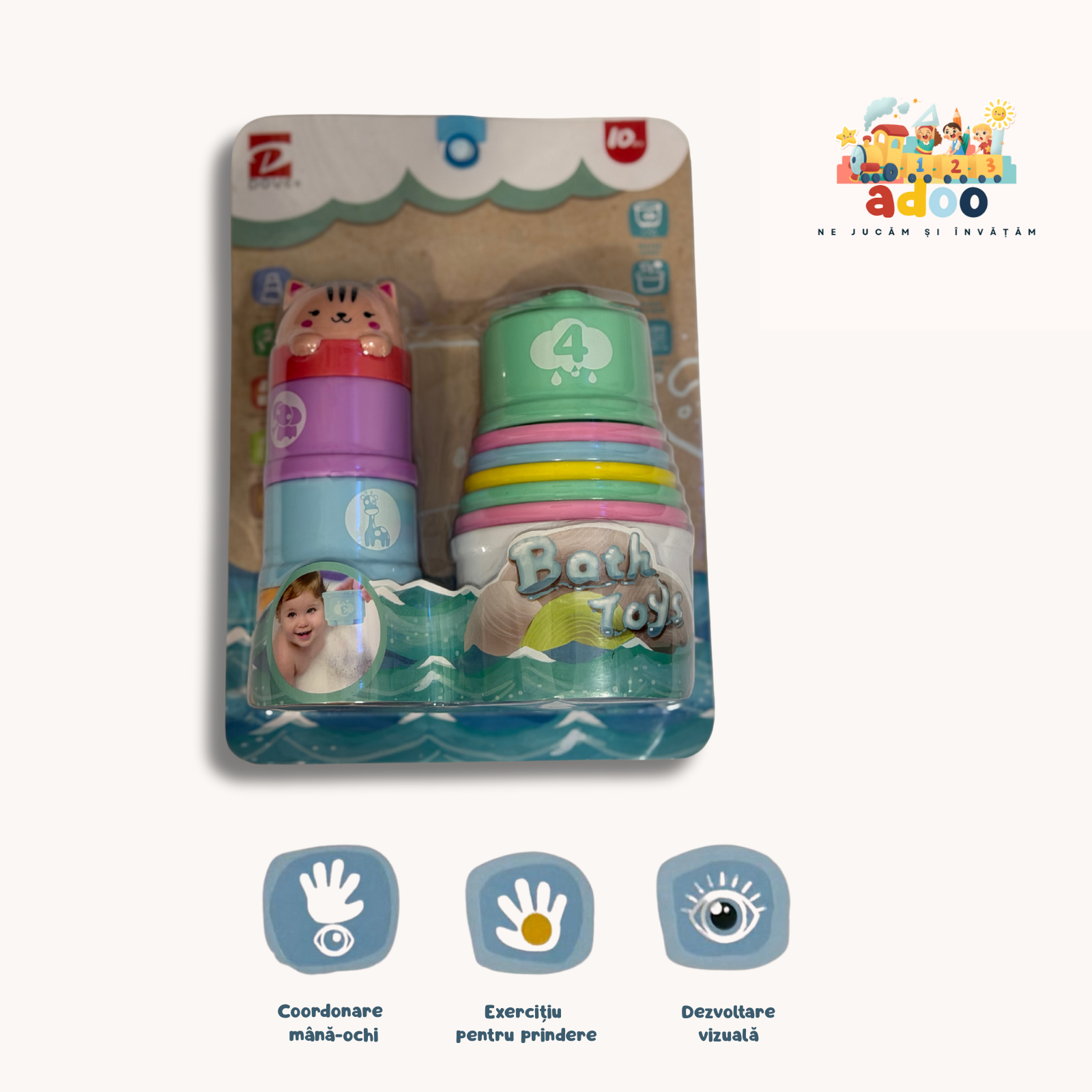 Pahare stivuibile pentru baie – joc senzorial pentru bebeluși și copii mici